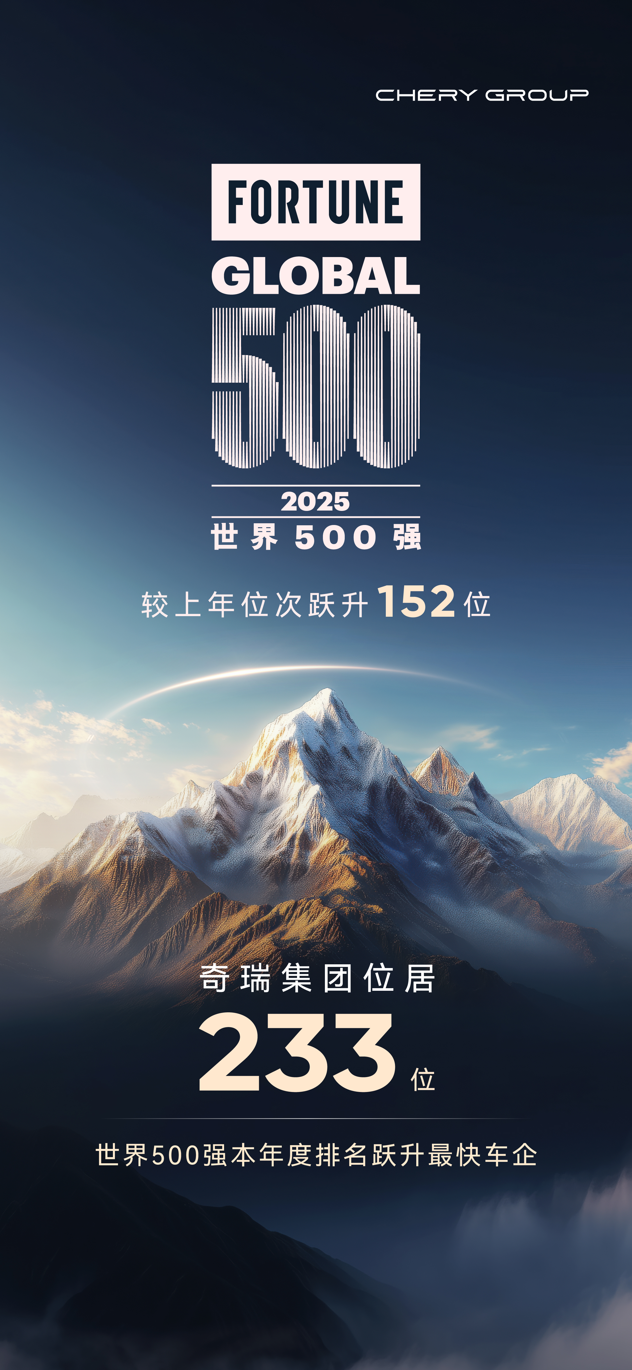 本報(bào)訊 (記者劉釗)7月29日,2025年《財(cái)富》世界500強(qiáng)榜單全球同步揭曉。奇瑞控股集團(tuán)有限公司(以下簡稱“奇瑞集團(tuán)”)再度登榜,位列第233位,較2024年躍升152個(gè)位次,成為年度躍升速度最快的車企。