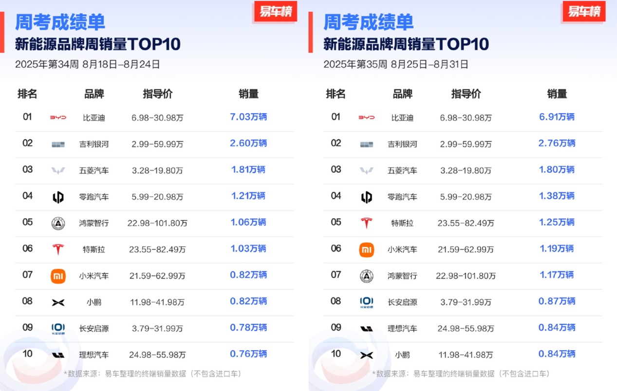 除了月銷量的持續(xù)領(lǐng)先,零跑在周度銷量表現(xiàn)上也同樣強(qiáng)勢。據(jù)易車榜,在最新一周的交付數(shù)據(jù)中,零跑以1.38萬臺(tái)的成績?cè)俣葕Z冠新勢力,新能源全品牌僅次于比亞迪、吉利銀河、五菱汽車,連續(xù)兩周在單周銷量上超越行業(yè)巨頭特斯拉,顯示出其產(chǎn)品力與用戶認(rèn)可度的持續(xù)提升。