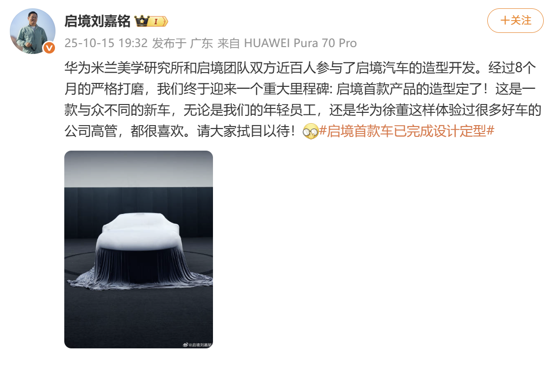 本報(bào)訊 (記者賈麗)10月16日消息,啟境汽車CEO劉嘉銘近日發(fā)布微博表示,由廣汽集團(tuán)與華為聯(lián)合打造的高端智能新能源汽車品牌“啟境”宣布其首款車型已完成設(shè)計(jì)定型。此次設(shè)計(jì)定型歷時(shí)8個(gè)月,經(jīng)過(guò)了數(shù)十輪的設(shè)計(jì)評(píng)審,得到了雙方團(tuán)隊(duì)的高度認(rèn)可。