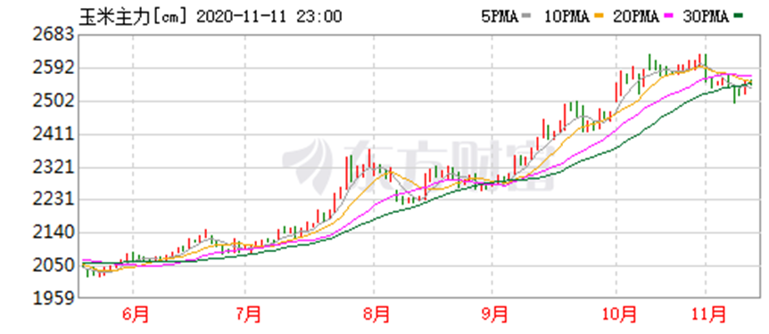國(guó)內(nèi)玉米主力合約一路走高(供圖:東方財(cái)富)