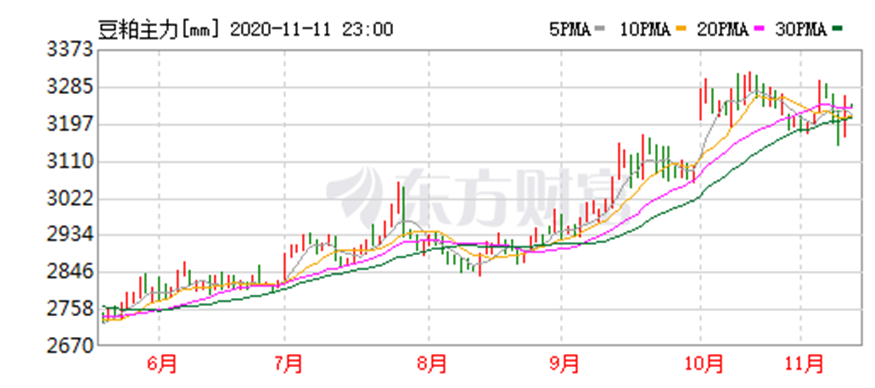 國(guó)內(nèi)豆粕主力合約一路走高(供圖:東方財(cái)富)