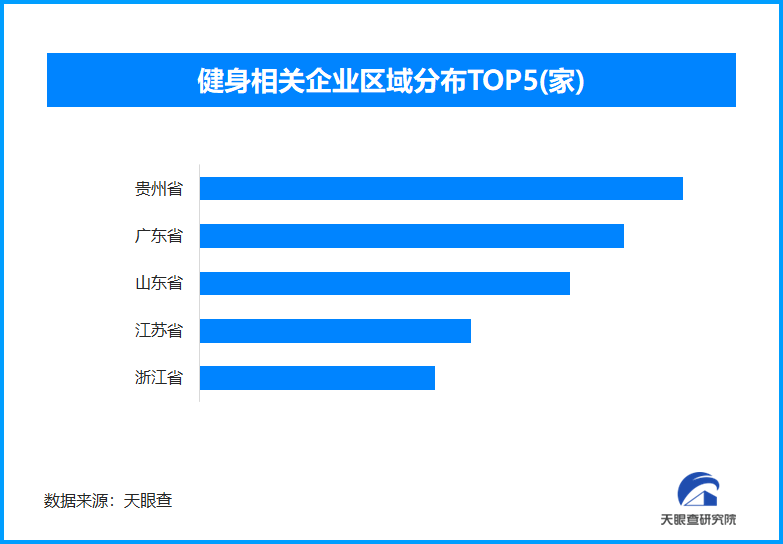 天眼查專(zhuān)業(yè)版數(shù)據(jù)顯示,截至目前,我國(guó)現(xiàn)存在業(yè)、存續(xù)狀態(tài)的健身相關(guān)企業(yè)超163.6萬(wàn)家。從區(qū)域分布來(lái)看,貴州省、廣東省、山東省、江蘇省健身相關(guān)企業(yè)數(shù)量位居前列,四個(gè)省份數(shù)量總和超過(guò)59萬(wàn)余家,占企業(yè)總數(shù)的36.07%。