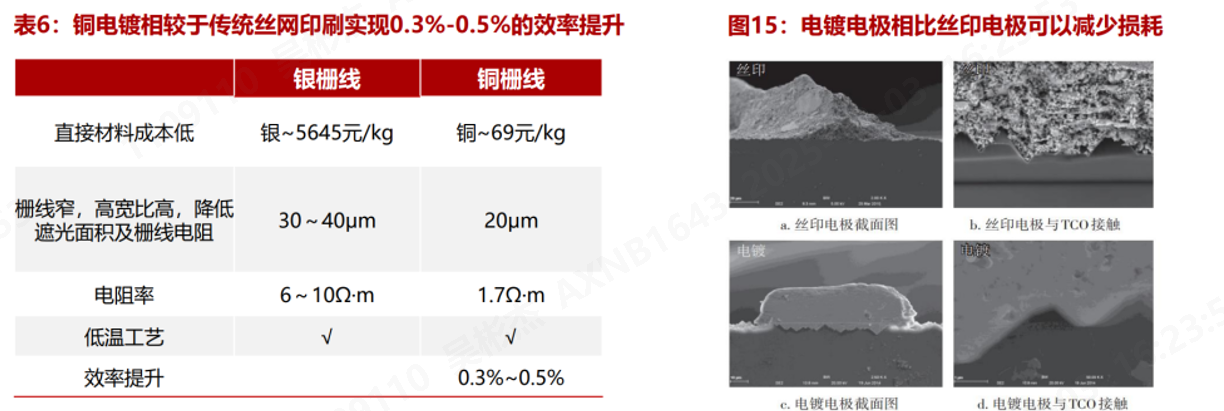 當(dāng)前銅、鋁等賤金屬價(jià)格不足銀的1%,且銅的導(dǎo)電性僅次于銀,成為替代銀的最優(yōu)選擇。目前減銀方案有著不同的技術(shù)路線,在不同光伏電池技術(shù)中推進(jìn)。其中,銀包銅為當(dāng)前產(chǎn)業(yè)較多嘗試路線。這種漿料以銅為內(nèi)核、銀為外層,可以一定程度保留銀的導(dǎo)電性,又降低銀用量。在HJT(異質(zhì)結(jié))電池領(lǐng)域,銀包銅漿已實(shí)現(xiàn)批量導(dǎo)入,東方日升、華晟新能源等企業(yè)已應(yīng)用銀含量低于30%的低銀含漿料。