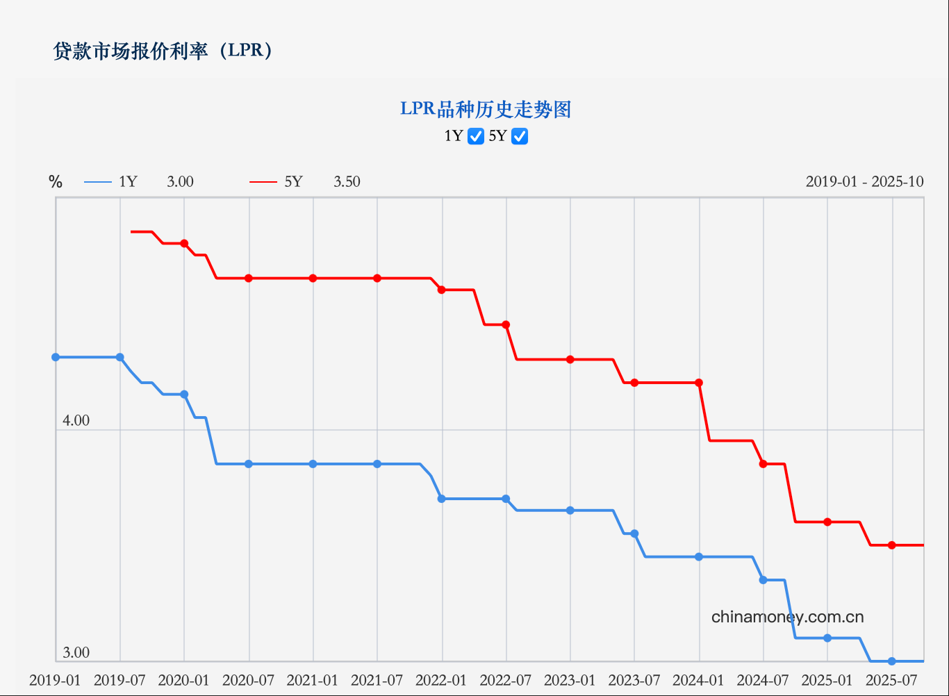 10月20日,中國人民銀行授權全國銀行間同業(yè)拆借中心公布,2025年10月20日貸款市場報價利率(LPR)為:1年期LPR為3.0%,5年期以上LPR為3.5%。兩個期限品種LPR較上月均維持不變。