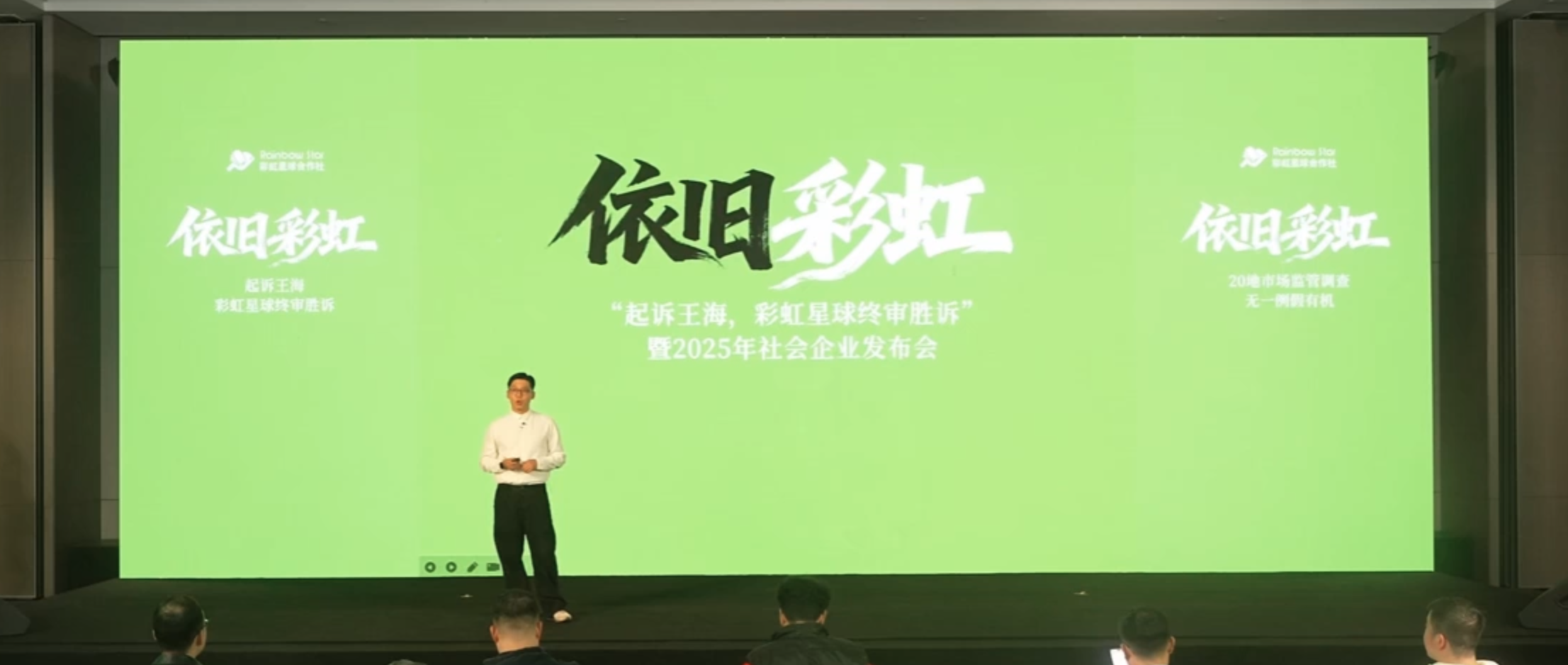 本報訊 (記者梁傲男)10月28日,“依舊彩虹——終審勝訴暨2025社會企業(yè)發(fā)布會”在西安召開?,F(xiàn)場,彩虹星球文化科技有限公司(以下簡稱“彩虹星球”)創(chuàng)始人王來庫宣布,該公司與王海的名譽侵權案終審落定,法院維持一審對王海侵權責任的全部判定。
