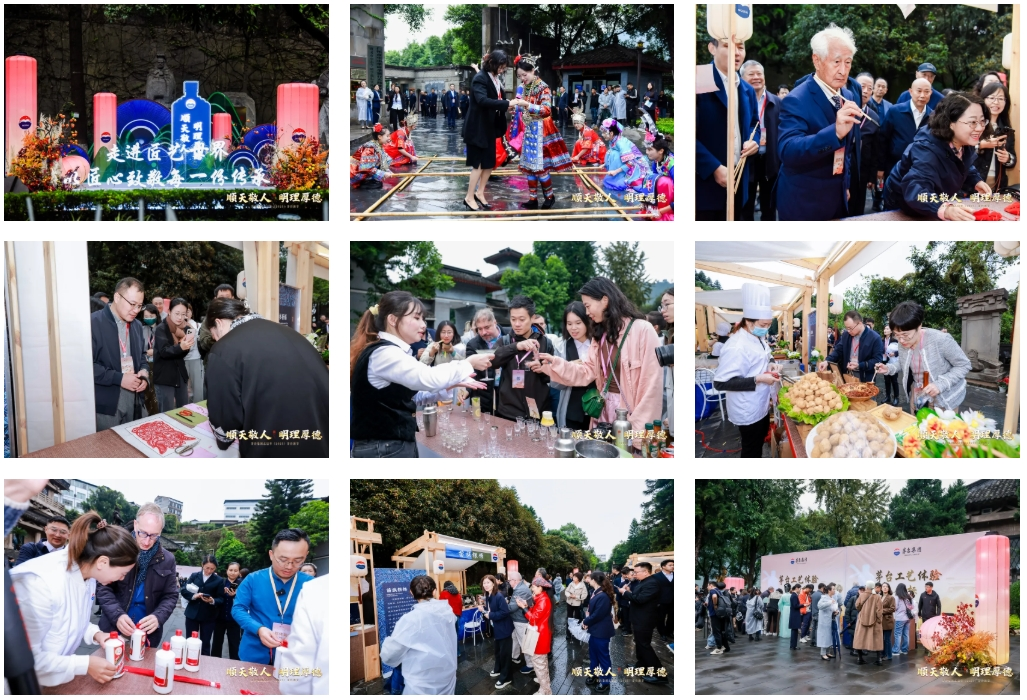 儀式圓滿禮成,茅臺(tái)中國(guó)酒文化城“走進(jìn)匠藝世界”主題文化活動(dòng)隨即精彩啟幕。竹竿舞以竹為器,以舞傳情,為遠(yuǎn)道而來的嘉賓送上貴州特色歡迎禮;非遺文化互動(dòng)體驗(yàn)區(qū)里,水書祈福、剪紙藝術(shù)、蠟染、投“福”納吉、苗族銀飾等項(xiàng)目各具韻味,嘉賓們通過親手參與其中,深切感受非遺的獨(dú)特魅力;貴州美食互動(dòng)品鑒區(qū)匯聚菊花茶、重陽糕、蛋包洋芋、遵義鹵味、豆腐圓子等風(fēng)味,讓嘉賓于味蕾間品味地域特色,盡覽舌尖上的貴州風(fēng)情。此外,茅臺(tái)酒工藝互動(dòng)體驗(yàn)區(qū)通過拴絲帶、貼酒標(biāo)體驗(yàn),讓嘉賓觸摸茅臺(tái)人刻在骨子里的嚴(yán)謹(jǐn)與匠心;“數(shù)字氣味聞香區(qū)”借助科技力量,讓茅臺(tái)酒香穿屏而來,為嘉賓開啟別樣嗅覺之旅;茅臺(tái)特調(diào)品飲區(qū)打破傳統(tǒng)邊界,融合不同地域特色風(fēng)味,解鎖茅臺(tái)的多元口感。