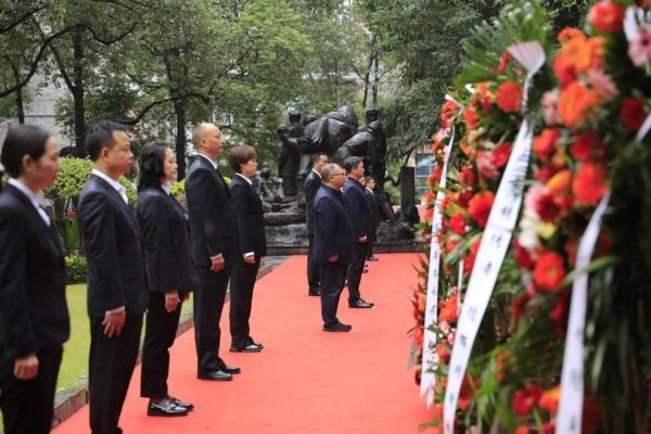 陳華、王莉代表茅臺(tái),懷著崇敬之情向周恩來總理塑像敬獻(xiàn)花籃,并整理緞帶,全體敬拜人員向周恩來總理塑像行三鞠躬禮,以表達(dá)對(duì)先輩的深切緬懷與崇高敬意。中國(guó)酒文化城內(nèi),鐘正強(qiáng)、張旭代表茅臺(tái)向先輩敬獻(xiàn)花籃,茅臺(tái)工匠及員工代表向茅臺(tái)先輩行三鞠躬禮,在莊重儀式中傳承忠孝文化,感恩先輩功績(jī)。