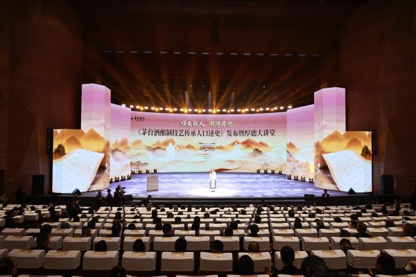 當(dāng)日下午,作為此次茅臺(tái)酒節(jié)的重要環(huán)節(jié),《茅臺(tái)酒釀制技藝傳承人口述史》發(fā)布暨厚德大講堂活動(dòng)在茅臺(tái)會(huì)議中心大禮堂舉行。中央廣播電視總臺(tái)主持人朱迅主持。