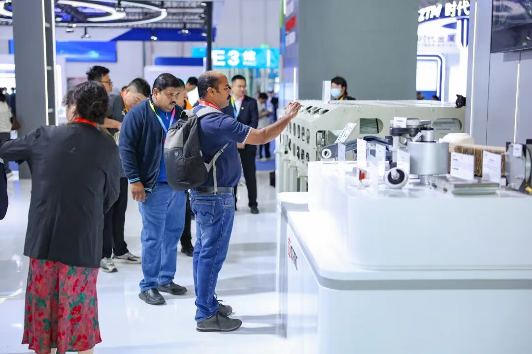 外國客商在時代新材的氫能產(chǎn)品前駐足觀看 時代新材供圖