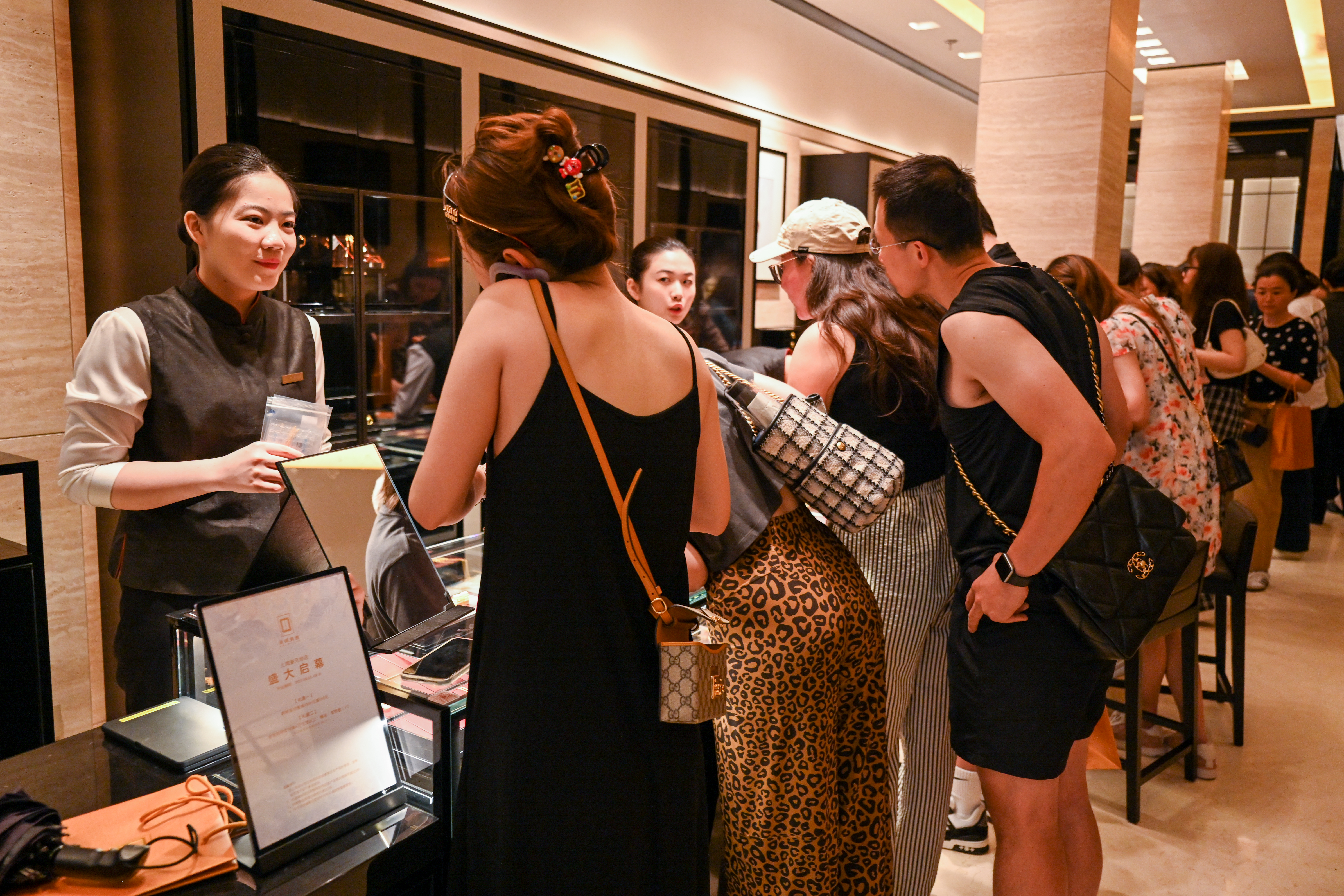 8月2日,老鋪黃金股份有限公司(以下簡稱“老鋪黃金”)位于上海新天地的全新門店正式開業(yè),并給出開業(yè)限時折扣,吸引眾多消費者排隊購物。這是繼5月港匯恒隆廣場、6月國金中心開設(shè)新店后,老鋪黃金在短短三個多月于上海開設(shè)的第三家門店。