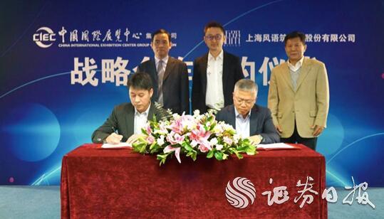 2019年3月20日上午10時,上海風(fēng)語筑展示股份有限公司和北京中展國際展覽工程有限公司在中國國際展覽中心集團(tuán)舉行了戰(zhàn)略合作簽約儀式。上海風(fēng)語筑展示股份有限公司副總經(jīng)理黃飛和北京中展國際展覽工程有限公司總經(jīng)理王春禹共同簽署了合作協(xié)議。上海風(fēng)語筑展示股份有限公司董事長李暉、首席品牌官張樹玉、中國國際展覽中心集團(tuán)總裁賀彩龍、副總裁姚瑞等人共同出席了本次簽約儀式。
