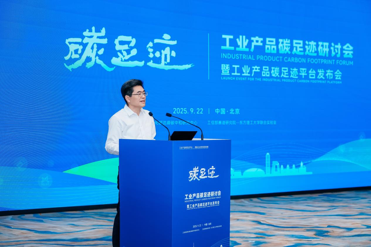 在“雙碳”目標(biāo)提出五周年之際,由工業(yè)和信息化碳達(dá)峰碳中和研究中心、工信部賽迪研究院—東方理工大學(xué)聯(lián)合實(shí)驗(yàn)室共同組織的“工業(yè)產(chǎn)品碳足跡研討會暨工業(yè)產(chǎn)品碳足跡平臺發(fā)布會”于9月22日在北京舉行。來自政府、高校、科研院所及龍頭企業(yè)的100余名代表齊聚,共話碳足跡管理體系建設(shè),見證國內(nèi)首個(gè)聚焦工業(yè)產(chǎn)品碳足跡的綜合性平臺正式上線。相關(guān)部委司局負(fù)責(zé)同志出席會議并致辭。
