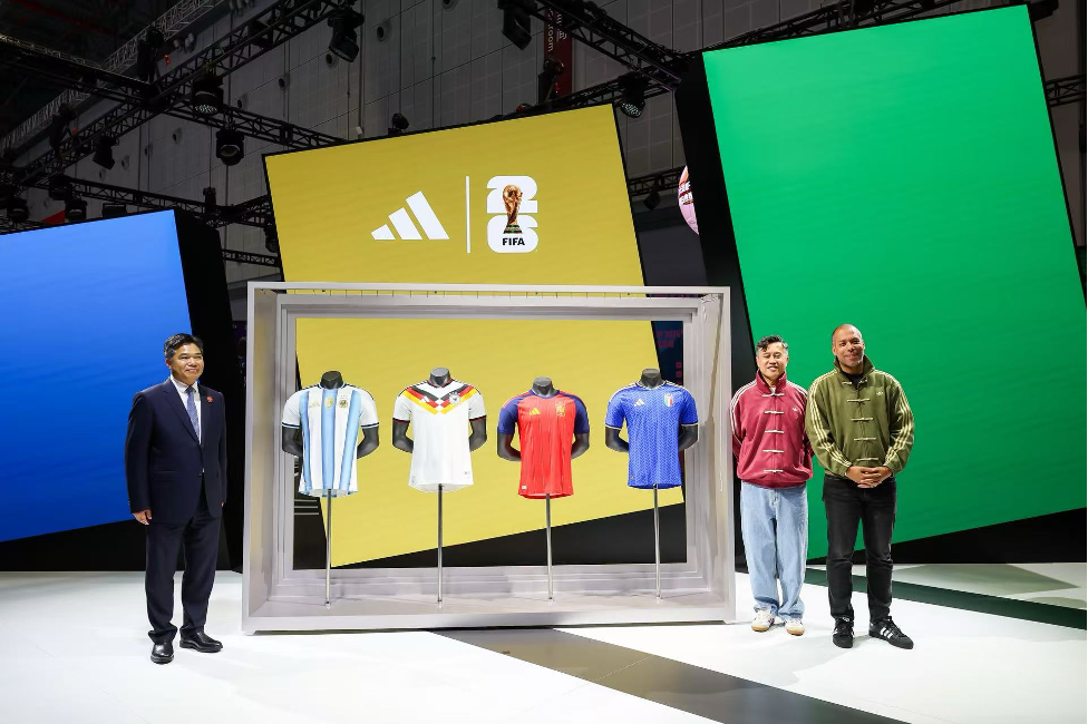 2026年是世界杯年。作為連續(xù)15屆世界杯官方贊助商的阿迪達(dá)斯,在本屆進(jìn)博會上特設(shè)世界杯專區(qū),首次國內(nèi)展出為德國、阿根廷、西班牙及意大利國家隊(duì)設(shè)計(jì)的2026年FIFA世界杯主場球衣。