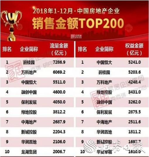 對比2018年全年TOP10榜單發(fā)現(xiàn),老牌前四甲中,碧桂園被萬科趕超,恒大維持第三,融創(chuàng)退居第六,相應地,保利、中海排名趕超融創(chuàng),剩余的“老面孔”綠地、新城、華潤、龍湖中,新城跌出前十,由世茂房地產(chǎn)接替。