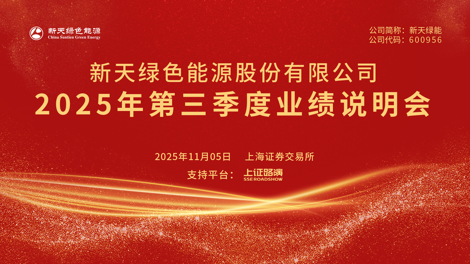 歡迎光臨證券日?qǐng)?bào)網(wǎng)。新天綠色能源股份有限公司2025年第三季度業(yè)績(jī)說明會(huì)將于2025年11月5日10:00-11:00舉行。[詳細(xì)]