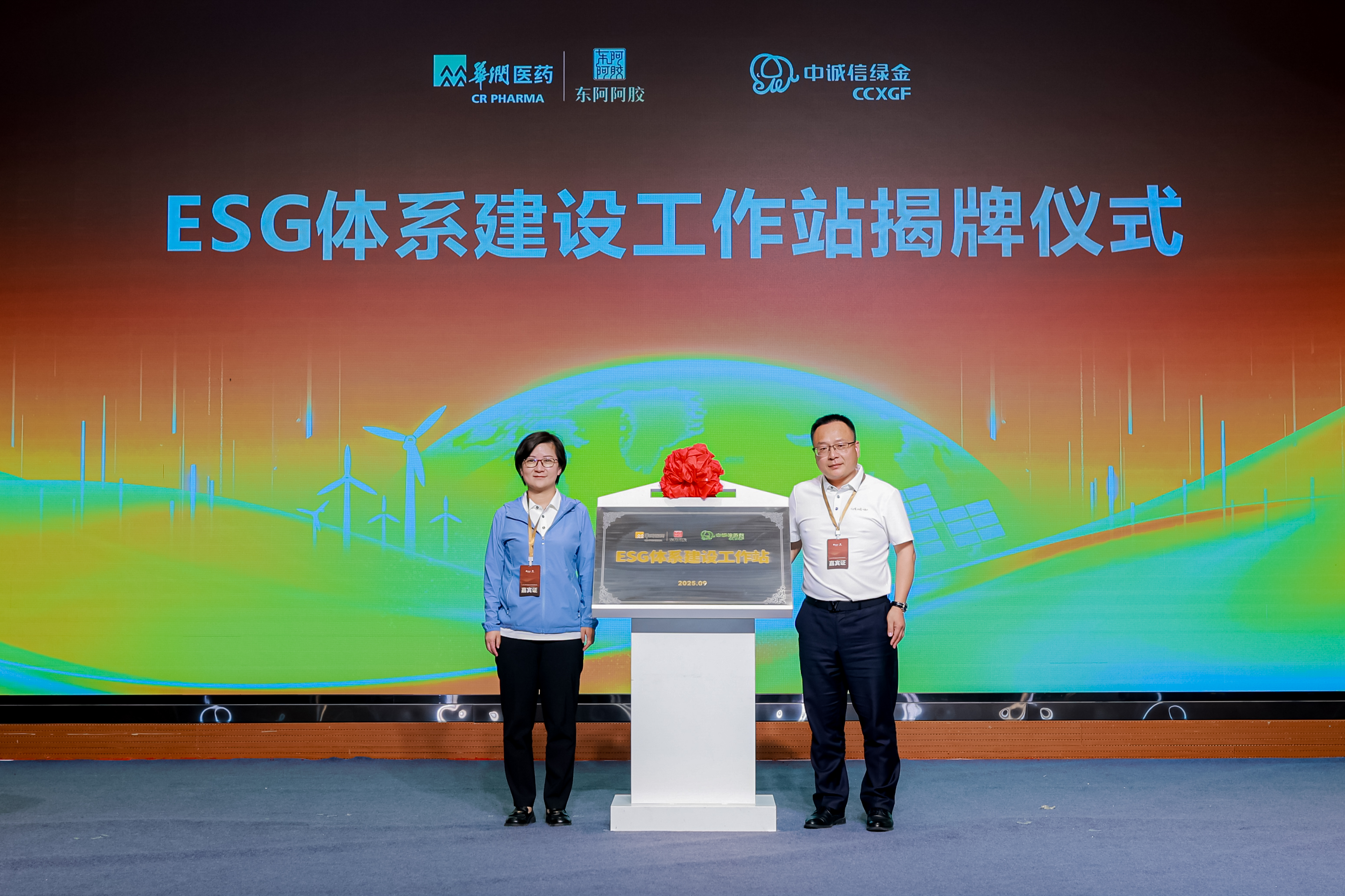 為進(jìn)一步深化產(chǎn)學(xué)研合作,深度踐行低碳理念,會(huì)議舉行了“ESG體系建設(shè)工作站”揭牌儀式,孫金妮、薛東陽(yáng)為工作站揭牌,薛東陽(yáng)為東阿阿膠頒發(fā)碳中和證書。