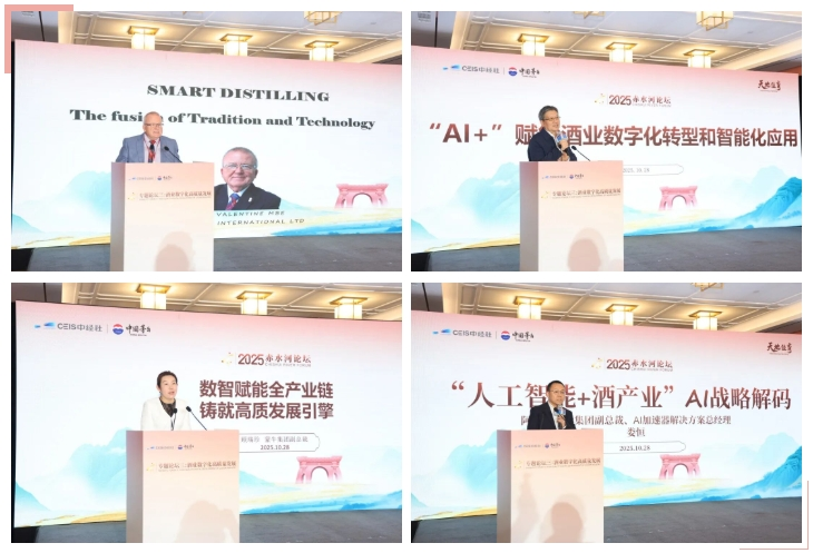 主旨演講中,瓦倫丁國際有限公司董事長大衛(wèi)·瓦倫丁以“SmartDistilling:TheFusionofTraditionandTechnology”為題,從國際視角分享了酒業(yè)數(shù)字化的發(fā)展經(jīng)驗(yàn)。北京機(jī)械工業(yè)自動化研究所有限公司董事長王振林以“‘AI+’賦能酒業(yè)數(shù)字化轉(zhuǎn)型和智能化應(yīng)用”為題,從工業(yè)自動化角度,解讀酒業(yè)生產(chǎn)的數(shù)字化升級路徑。內(nèi)蒙古蒙牛乳業(yè)(集團(tuán))股份有限公司副總裁顧瑞珍以“數(shù)智賦能全產(chǎn)業(yè)鏈鑄就高質(zhì)量發(fā)展引擎”為題,從企業(yè)合作視角,分享如何助力酒業(yè)實(shí)現(xiàn)全鏈條數(shù)字化。阿里云智能集團(tuán)副總裁、AI加速器解決方案總經(jīng)理婁恒以“‘人工智能+酒產(chǎn)業(yè)’AI戰(zhàn)略解碼”為題,結(jié)合阿里實(shí)踐,分享AI如何為酒業(yè)數(shù)字化插上翅膀。
