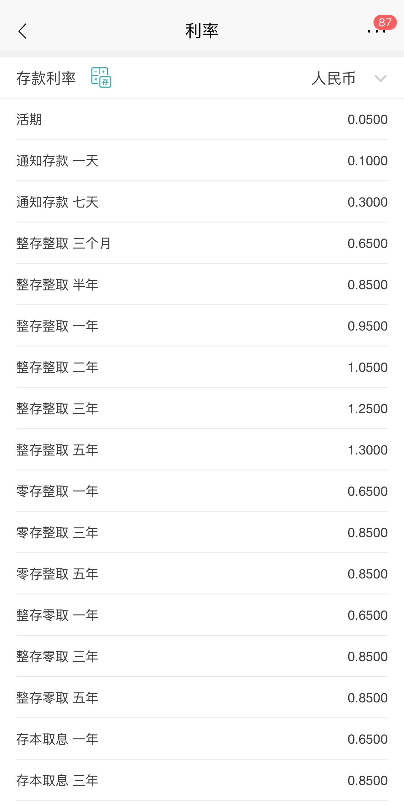 此外,交通銀行存款利率調(diào)整后,3個月、6個月、1年期、2年期、3年期、5年期定期存款利率(整存整取)為0.65%、0.85%、0.95%、1.05%、1.25%、1.3%。