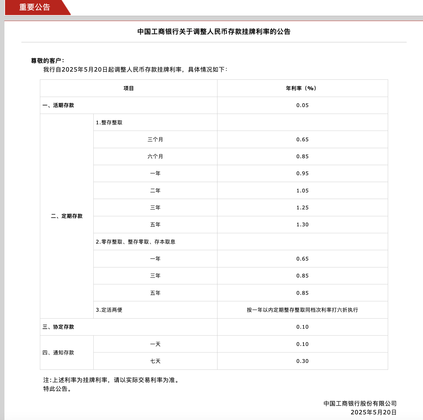 5月20日,工商銀行、農(nóng)業(yè)銀行、中國銀行、建設(shè)銀行、交通銀行等國有大型商業(yè)銀行均對存款掛牌利率進行調(diào)整。