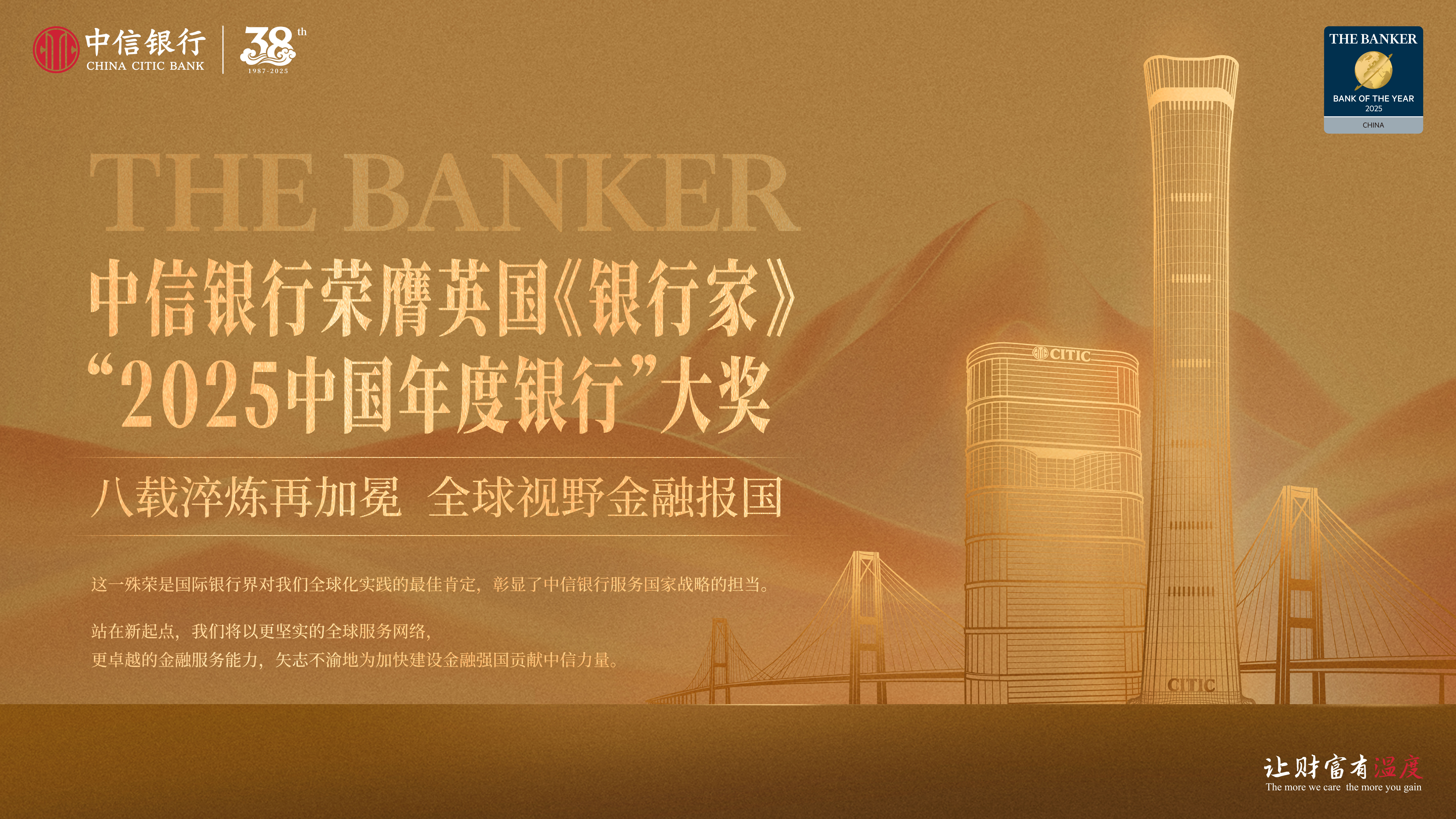 近日,一張漂洋過海且含金量十足的榜單“造訪”了中國銀行業(yè)。在這個被視為“銀行業(yè)奧斯卡”的2025年度評選中,中信銀行站上C位,榮膺“2025年中國年度銀行”。該份榜單是國際專業(yè)財經(jīng)媒體英國《銀行家》(The Banker)對于中信銀行近年來在服務(wù)實體經(jīng)濟領(lǐng)域一系列創(chuàng)新實踐的認(rèn)同與褒獎,在歷屆榜單中,工商銀行、農(nóng)業(yè)銀行等國有大行和幾家頭部股份制銀行也曾斬獲該年度銀行獎項。