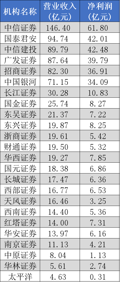凈利潤前十排行榜單為:中信證券、中信建投證券、國泰君安、廣發(fā)證券、招商證券、中國銀河證券、長江證券、國金證券、東興證券和華西證券。