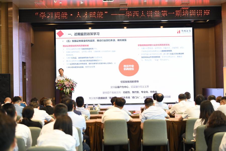 公司已陸續(xù)開辦了6期面向全體員工的華西大講堂系列講座,內容涉及宏觀經濟、監(jiān)管政策解讀、行業(yè)文化、前沿產業(yè)分析、公司戰(zhàn)略宣講等。助力員工理解行業(yè)文化、洞悉市場動態(tài)、捕捉經濟脈搏,探索業(yè)務發(fā)展機遇,為公司業(yè)務轉型與創(chuàng)新發(fā)展注入新的思維動力。