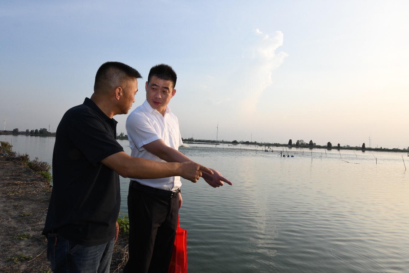 興化農(nóng)商銀行千垛支行行長夏云到客戶徐正高養(yǎng)殖區(qū)走訪了解資金使用情況 興化農(nóng)商銀行供圖