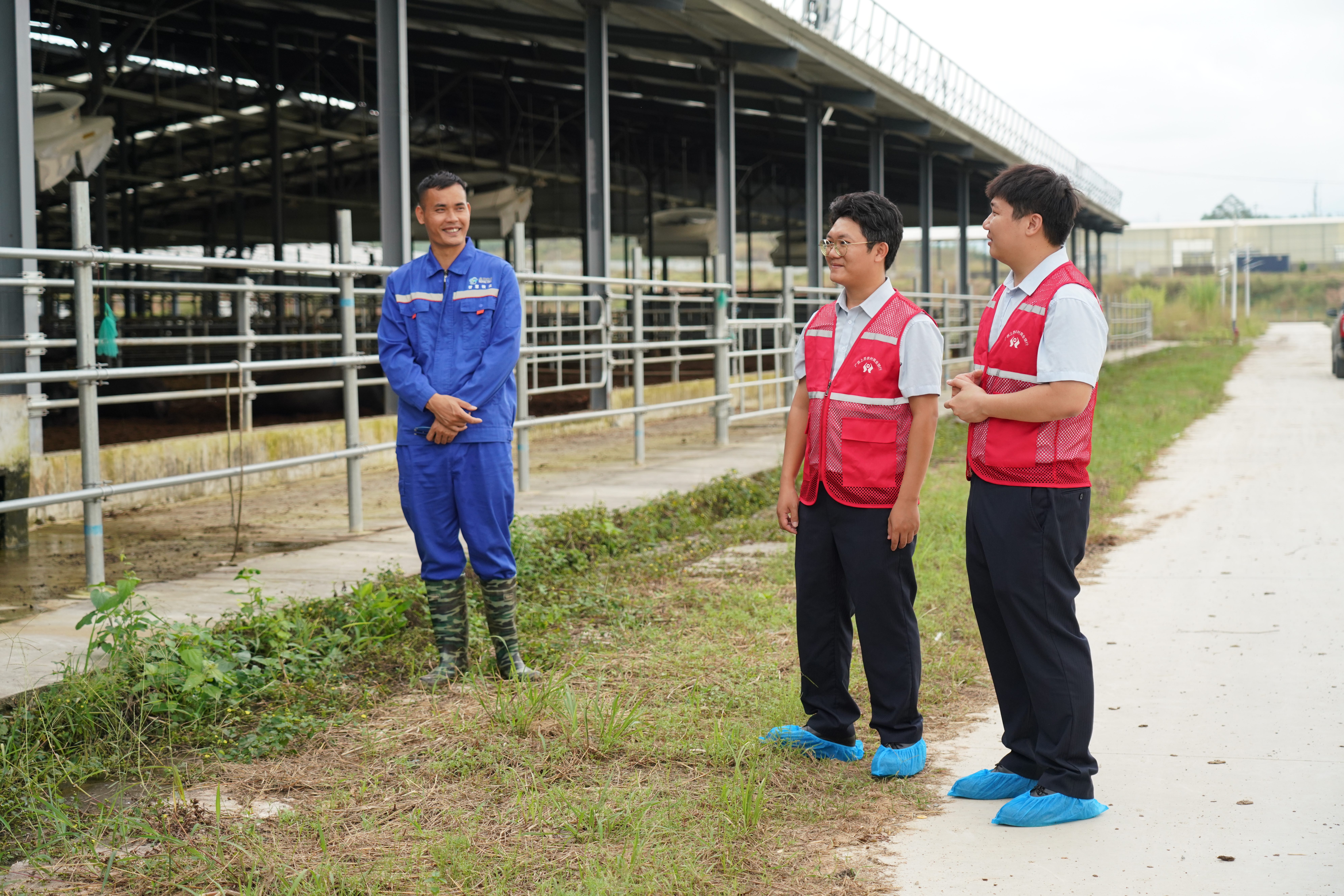 10月13日,上思農商銀行的兩位金融專員專程走訪牧場,實地查看胚胎牛犢的生長狀況、受體母牛的喂養(yǎng)管理情況,與企業(yè)負責人深入溝通后續(xù)繁育計劃與資金需求,為進一步優(yōu)化金融服務、助力牧場擴大規(guī)模提前謀劃。