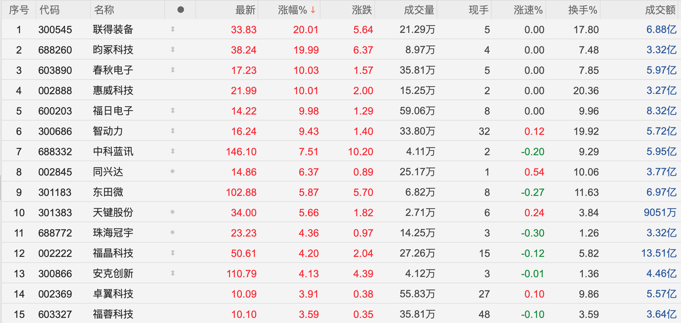 11月27日,A股消費(fèi)電子概念板塊迎來全面爆發(fā),多只個股強(qiáng)勢漲停,板塊整體表現(xiàn)亮眼。截至午間收盤,聯(lián)得裝備(300545.SZ)、昀家科技(688260.SH)、春秋電子(603890.SH)、惠威科技(002888.SZ)和福日電子(600203.SH)漲停。此外,智動力(300686.SZ)、中科藍(lán)訊(688332.SH)、同興達(dá)(002845.SZ)和東田微(301183.SZ)等個股漲幅也位居前列,板塊內(nèi)多數(shù)個股實(shí)現(xiàn)上漲。