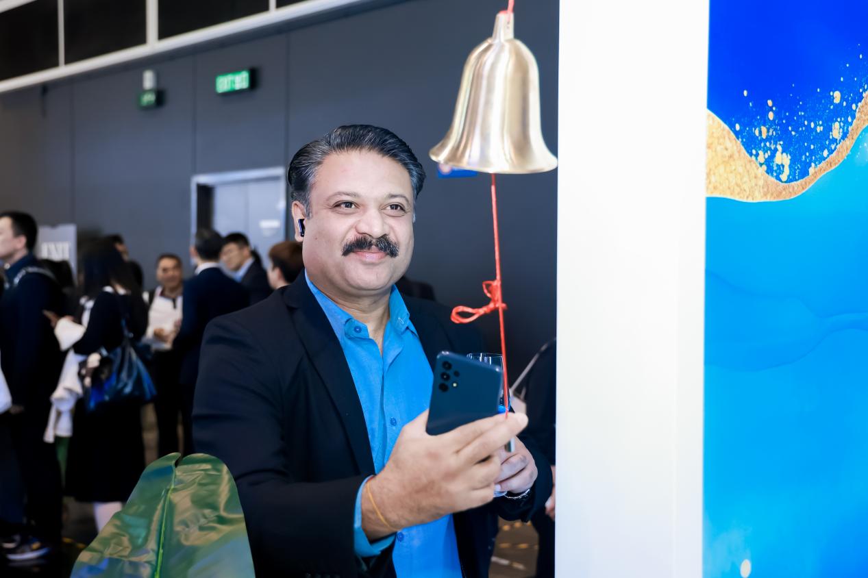展廳內(nèi)一處別致的鈴鐺體驗(yàn)區(qū)尤為引人注目——嘉賓輕搖鈴鐺,即可開啟專屬綿柔品鑒之旅,這一巧妙設(shè)計(jì)將品酒的儀式感與趣味性完美結(jié)合,吸引了眾多海內(nèi)外嘉賓駐足流連。