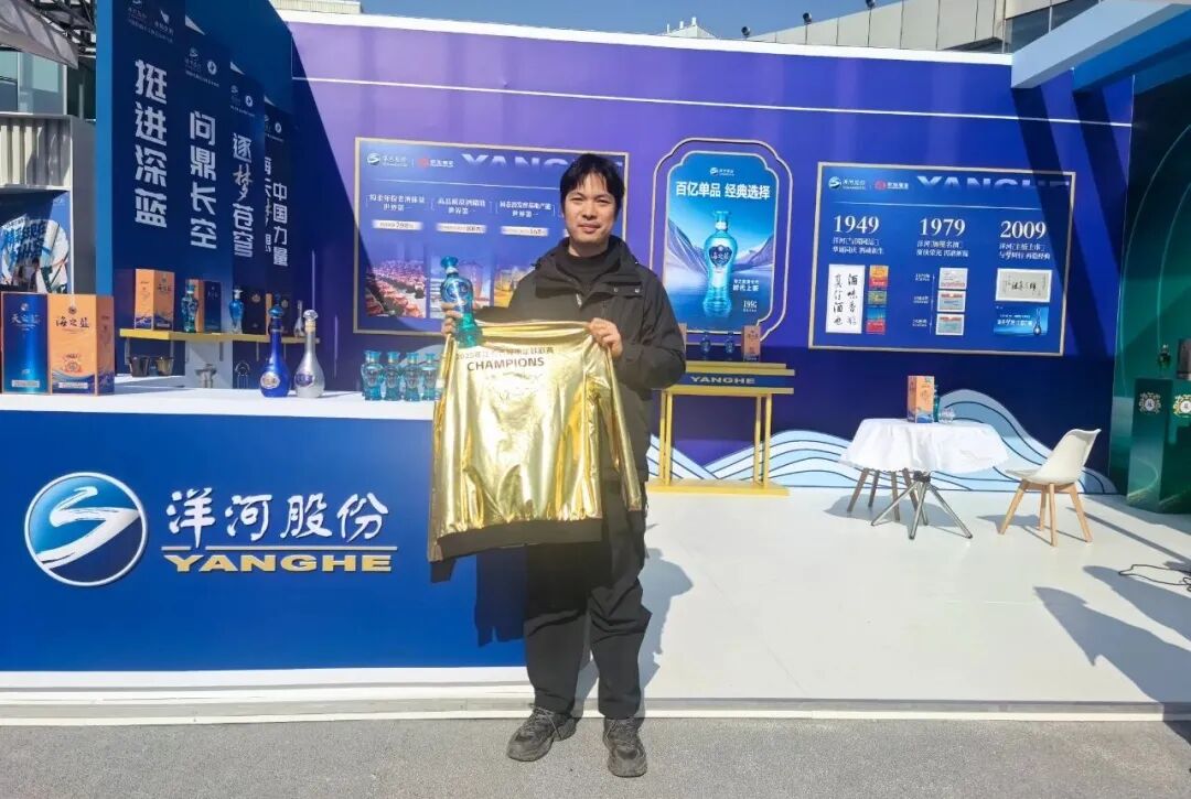 (啟動(dòng)儀式現(xiàn)場,幸運(yùn)觀眾獲得“蘇超”冠軍泰州隊(duì)教練周高萍簽名球衣)