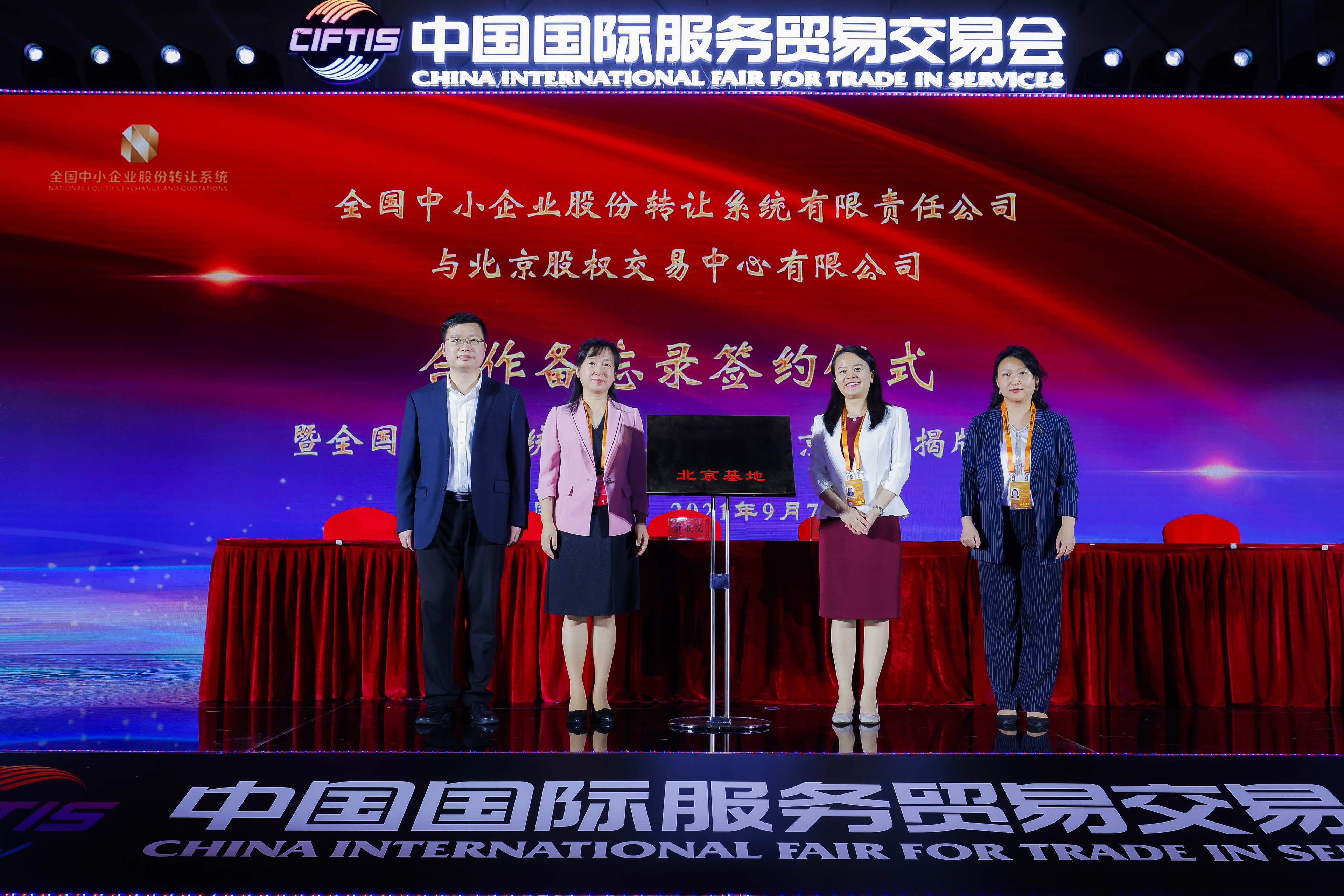 9月7日,在中國(guó)國(guó)際服務(wù)貿(mào)易交易成果發(fā)布會(huì)上,全國(guó)中小企業(yè)股份轉(zhuǎn)讓系統(tǒng)有限責(zé)任公司(以下簡(jiǎn)稱“全國(guó)股轉(zhuǎn)公司”)與北京股權(quán)交易中心有限公司簽署合作備忘錄,并舉辦全國(guó)股轉(zhuǎn)系統(tǒng)(新三板)北京基地揭牌儀式。