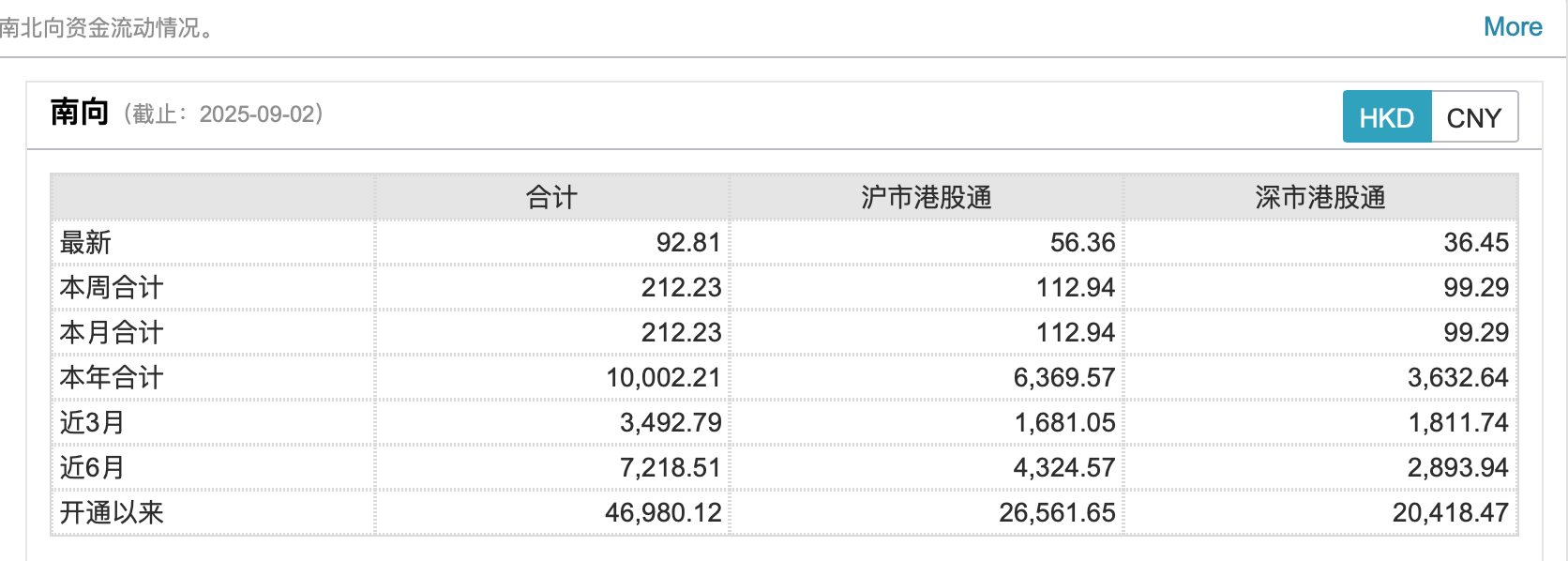 截至目前,南向資金累計凈買入港股市場金額約46980.12億港元。
