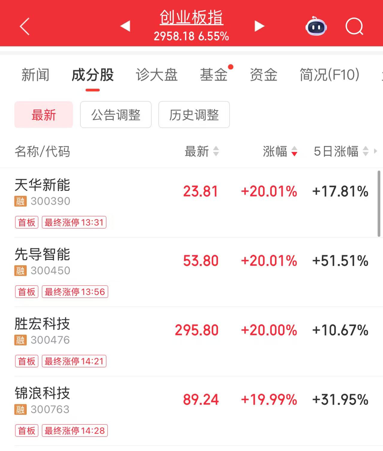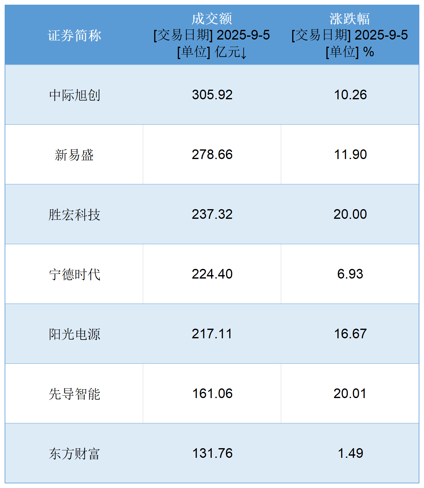 創(chuàng)業(yè)板指成分股中,天華新能、先導智能、勝宏科技、錦浪科技等4只個股漲停。Wind資訊數據顯示,創(chuàng)業(yè)板今日成交量247.72億股,成交額6760.85億元。創(chuàng)業(yè)板的個股中,中際旭創(chuàng)成交額居首,今日成交額為305.92億元,位居全A股市場首位。