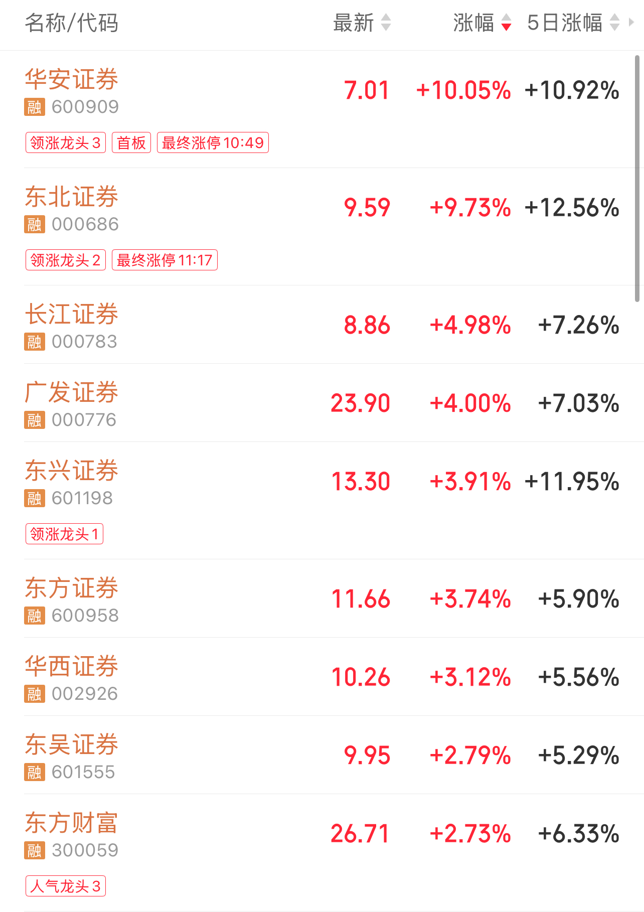 截至10月29日午間收盤,市場交投活躍,上證指數(shù)小幅上漲0.37%,報收于4002.83點(diǎn)。素有“牛市旗手”之稱的證券板塊整體表現(xiàn)亮眼,漲幅超過2%。其中,華安證券表現(xiàn)尤為突出,直接漲停封板;東北證券漲幅也超過9%;廣發(fā)證券、長江證券等個股漲幅均超過4%,證券板塊內(nèi)個股呈現(xiàn)出普漲態(tài)勢,市場熱度明顯提升。