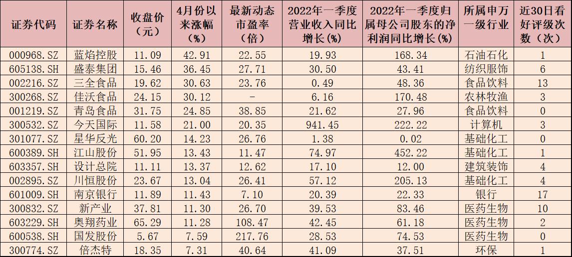 表:4月份以來漲幅超7%的業(yè)績(jī)雙增長(zhǎng)股一覽