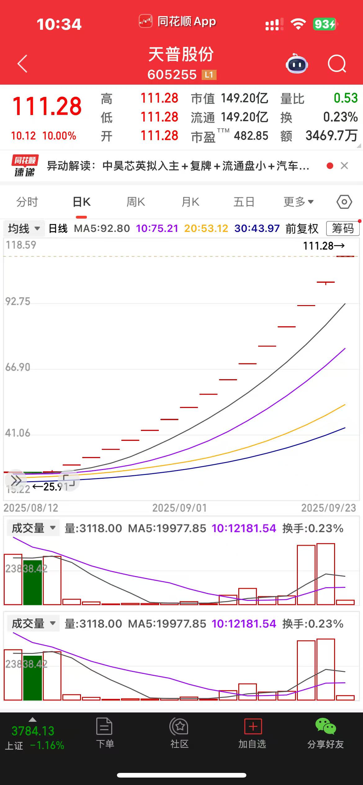 值得一提的是,9月23日,天普股份(605255)競(jìng)價(jià)再度漲停,股價(jià)達(dá)成“15連板”,報(bào)111.28元/股。最新A股總市值達(dá)149.20億元。