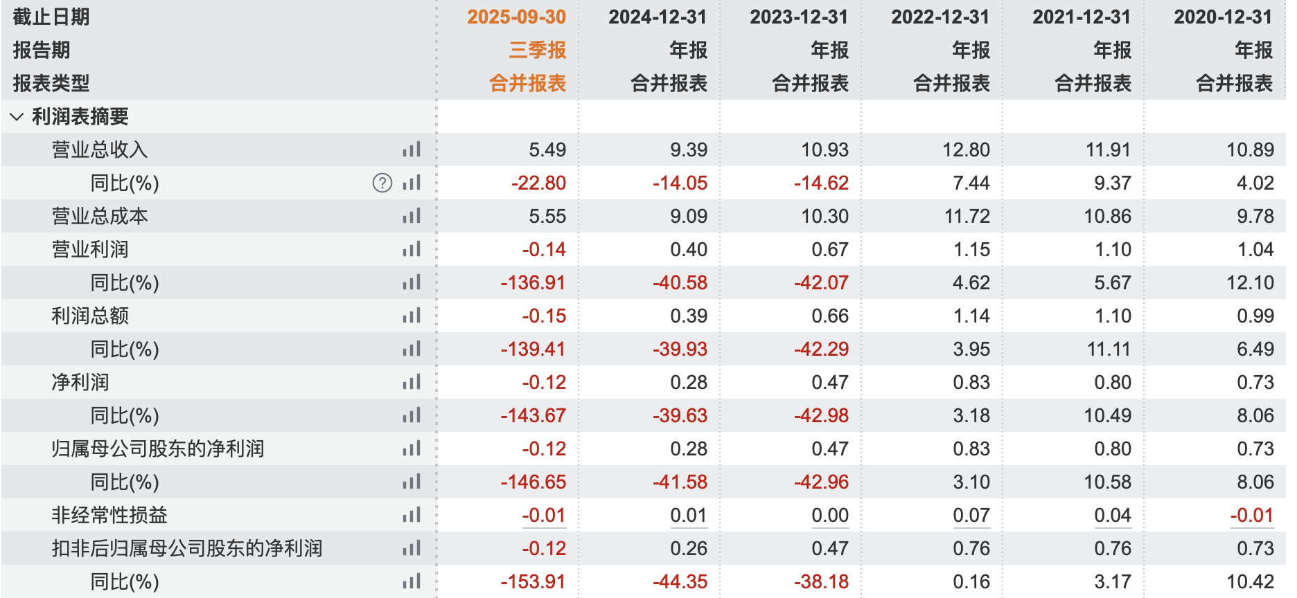 合富中國2025年第三季度報告顯示,前三季度實現(xiàn)營業(yè)收入5.49億元,同比下降22.80%;歸屬于上市公司股東的凈利潤為-1238.62萬元,同比下降146.65%。