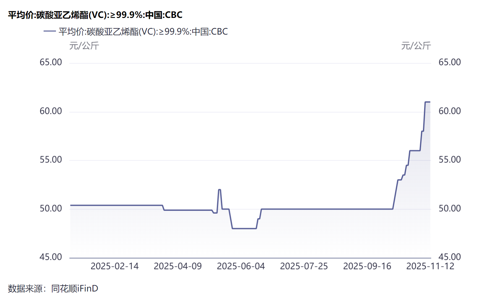 不止于此,電解液添加劑VC(碳酸亞乙烯酯)、FEC(氟代碳酸乙烯酯)由于價格持續(xù)上漲,也引發(fā)資本市場高度關(guān)注。