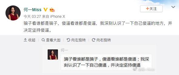 7月4日上午消息,在李笑來割韭菜錄音曝光后,幣安Binance聯(lián)合創(chuàng)始人何一、波場創(chuàng)始人孫宇晨紛紛發(fā)表微博,疑似做出回應。何一表示:"騙子看誰都是騙子,傻逼看誰都是傻逼,我深刻認識了一下自己傻逼的地方,并決定堅持傻逼。 "