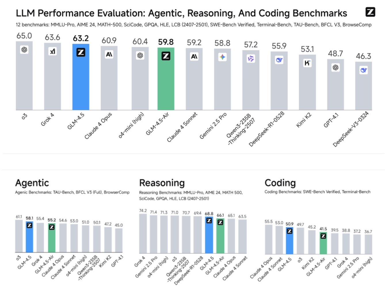 記者了解到,為綜合衡量模型的通用能力,智譜選擇了最具有代表性的12個(gè)評(píng)測(cè)基準(zhǔn),綜合平均分,GLM-4.5取得了全球模型第三、國產(chǎn)模型第一,開源模型第一。