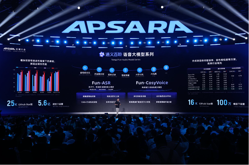 Fun-ASR基于數(shù)千萬小時(shí)真實(shí)語音數(shù)據(jù)訓(xùn)練而成,具備強(qiáng)大的上下文理解能力與行業(yè)適應(yīng)性,可實(shí)時(shí)處理10多種語言;Fun-CosyVoice可提供上百種預(yù)制音色,適用于客服、銷售、直播電商、消費(fèi)電子、有聲書、兒童娛樂等場(chǎng)景。目前,通義百聆開源模型的下載量已超5.6億。