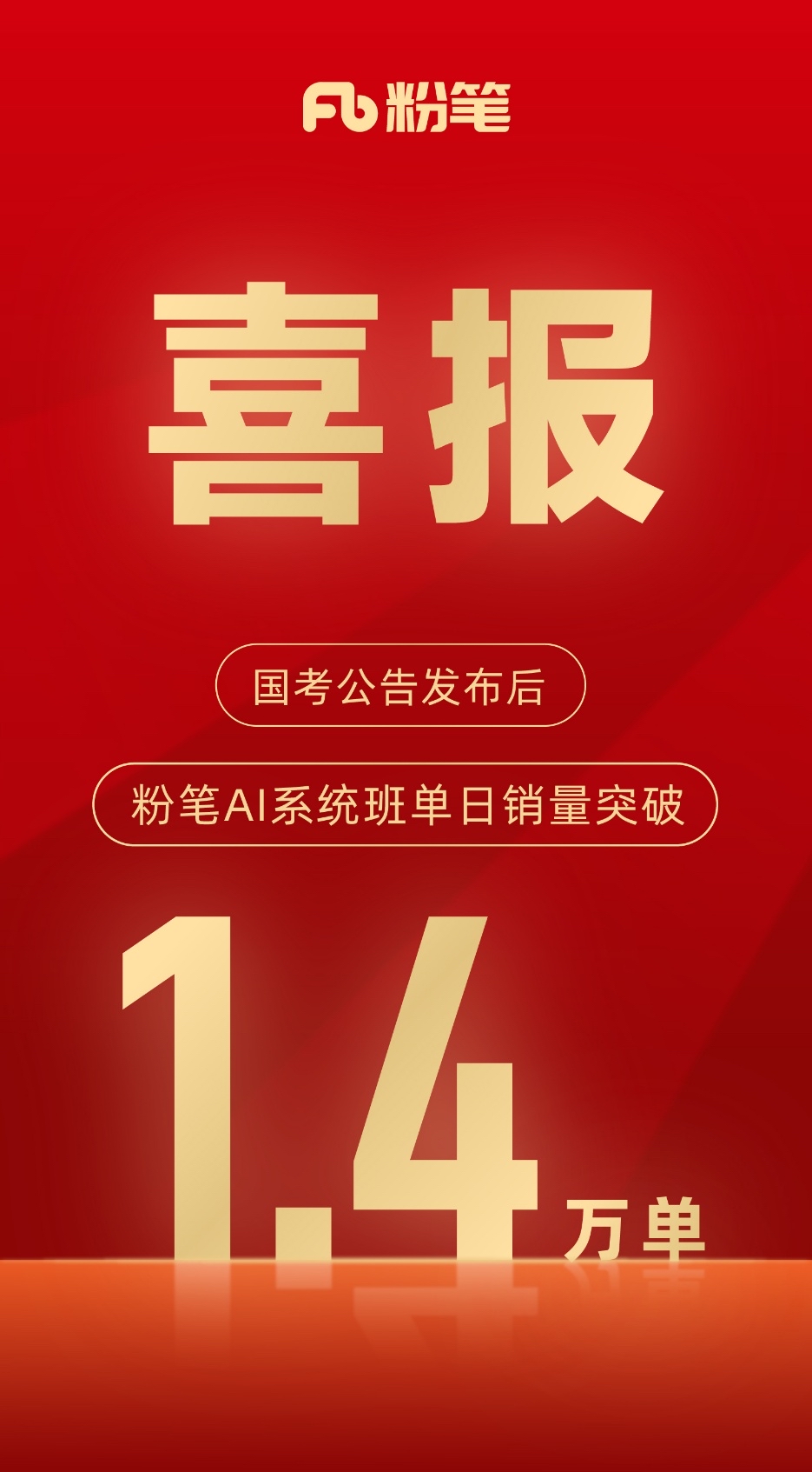 本報(bào)訊 (記者袁傳璽)10月16日,國(guó)內(nèi)職業(yè)教育賽道頭部企業(yè)粉筆宣布,旗下AI刷題系統(tǒng)班在國(guó)考報(bào)名公告發(fā)布后迅速引發(fā)市場(chǎng)強(qiáng)烈反響,單日銷(xiāo)量突破14000單。從市場(chǎng)表現(xiàn)來(lái)看,以AI大模型為核心技術(shù)的,高效、精準(zhǔn)、個(gè)性化的智能備考方案正成為考生新寵。