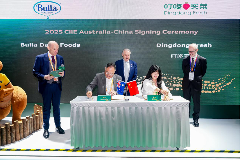 11月6日,叮咚買菜與澳洲知名乳制品品牌Bulla在進(jìn)博會(huì)上簽訂了直采協(xié)議,約定將于明年采購(gòu)至少500萬(wàn)元的乳制品商品,簽約現(xiàn)場(chǎng)由澳大利亞貿(mào)易和旅游部長(zhǎng)、參議員唐方睿見證。