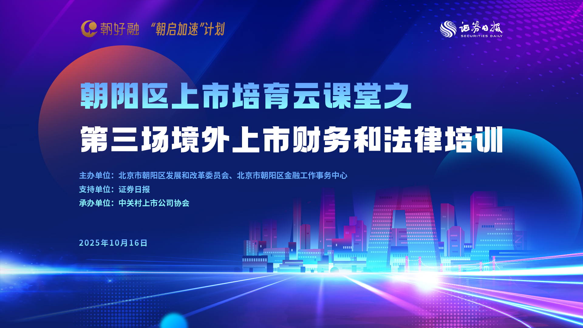 歡迎光臨證券日?qǐng)?bào)網(wǎng)。朝陽(yáng)區(qū)上市培育云課堂之第三場(chǎng)境外上市財(cái)務(wù)和法律培訓(xùn)將于2025年10月16日(星期四)14:30--17:30舉行。[詳細(xì)]